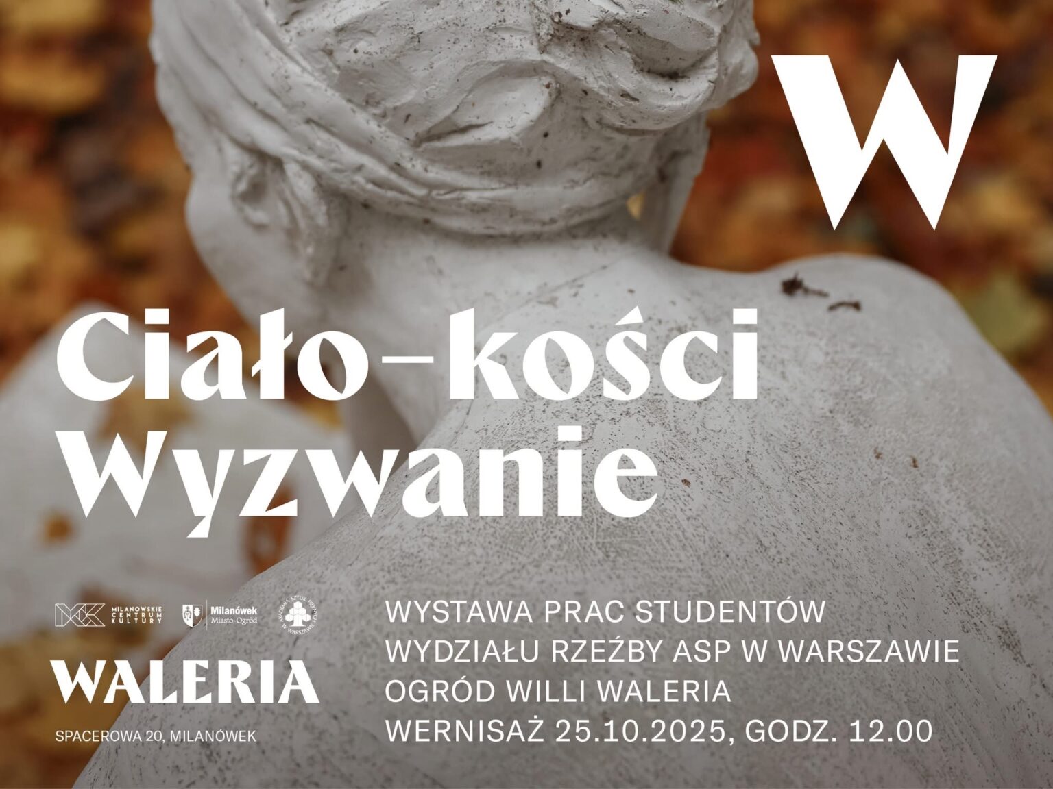 Serdecznie zapraszamy na  wernisaż wystawy prac studentów Wydziału Rzeźby Akademii Sztuk Pięknych w Warszawie pt. „Ciało - kości. Wyzwanie". Milanówek Willa Waleria 25.10.2015.