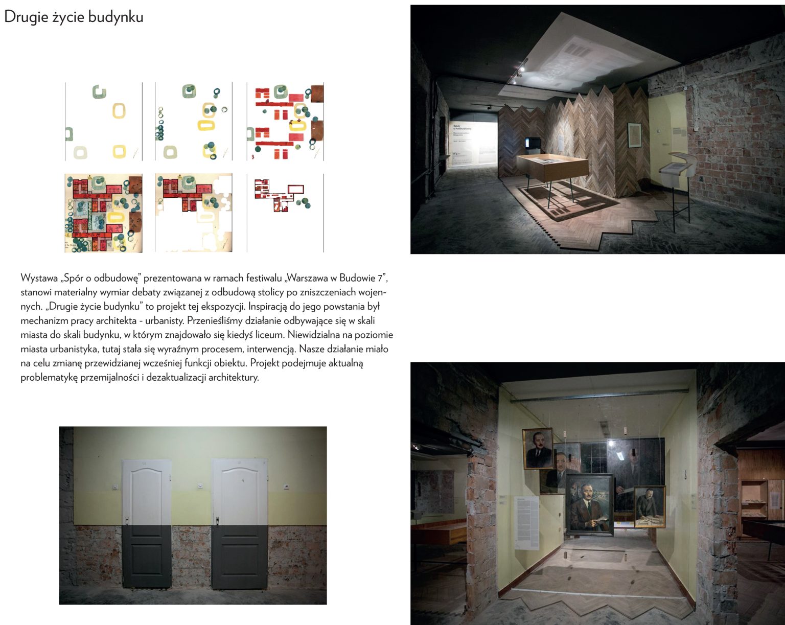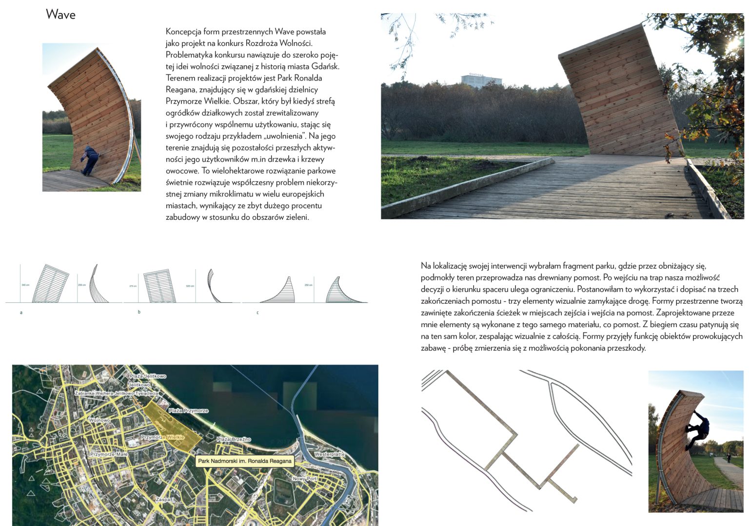 Do najważniejszych realizacji w jej dorobku należą: Wave – monumentalne formy przestrzenne funkcjonujące na terenie parku Ronalda Reagana w Gdańsku (2014 r.), Drugie życie obiektu – architektura wystawy Spór o odbudowę prezentowanej w ramach festiwalu Warszawa w Budowie 7 na terenie dawnego budynku IX Liceum im. Klementyny Hoffmanowej przy ul. Emilii Plater 29 w Warszawie (2015 r.) i projekt doktorski o tytule Jestem Spokojna, zaprezentowany w Studio 3one33, które było kiedyś pracownią Aliny Szapocznikow, a później Zofii Wolskiej.